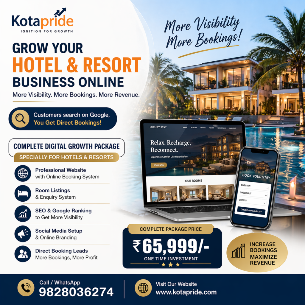 Digital Marketing Services for Hotels & Resorts – Increase Direct Bookings with Kotapride Introduction Aaj ke digital era me travellers hotel ya resort choose karne se pehle Google par search karte hain, reviews dekhte hain, aur phir booking decision lete hain. Agar aapka hotel ya resort online visible nahi hai, to aap valuable direct bookings […]